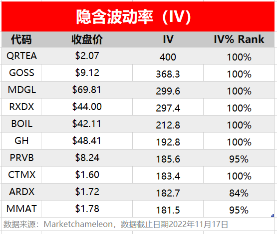 (注:隐含波动率(IV)指标是期权交易最常用的指标之一,通常情况下该指标越高,意味着期权交易的机会越大,IV(%)百分比表示当前隐含波动率在过去一年中最高和最低区间内的相对位置,有助于了解指定期权波动率的纵向趋势,该比率越高说明近期隐含波动率处于上升趋势。)