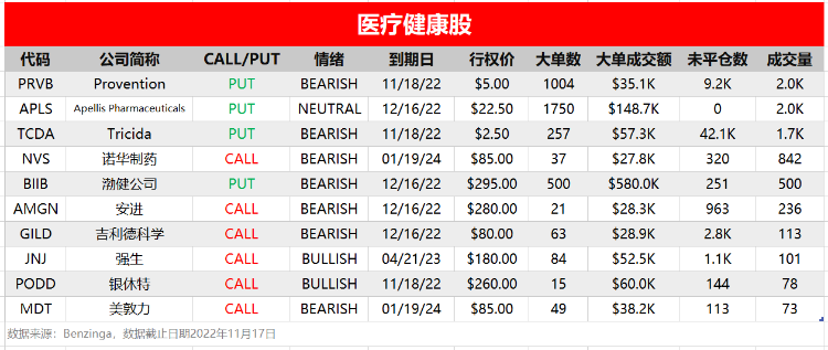 - 渤健公司现12月16日到期、行权价295美元的看跌期权大单异动,成交500张,总成本58万美元。