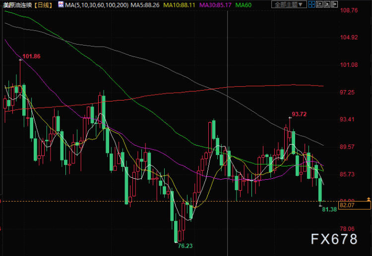 11月18日(周五)亚市盘初,美油交投于82.04美元/桶附近;油价周四下跌近4%,疫情蔓延和对美国更激进加息的担忧挤压了需求,圣路易斯联储主席布拉德表示,即便使用“鸽派”假设,基本货币政策规则也要求美联储的政策利率上升到5%左右,而更严格的假设将要求利率升至7%以上。
