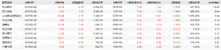 深股通中,弘业期货、浙江世宝、新华制药、申万宏源、海普瑞、东江环保、郑州银行、龙源电力、晨鸣纸业、中集车辆等位列溢价榜前列。投资者可关注相关个股估值回归机会。