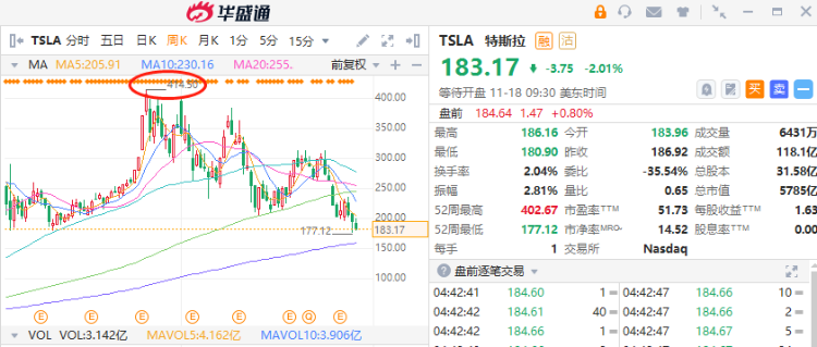 截至11月17日周四收盘,特斯拉报183.17美元,距离207美元有13%的差距,但周五上演的大奇迹日的可能性并不高,这意味着特斯拉的股价更有可能继续下跌而不是上涨。