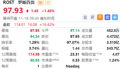 罗斯百货 $ROST 盘前涨超16%,Q3业绩全面超预期