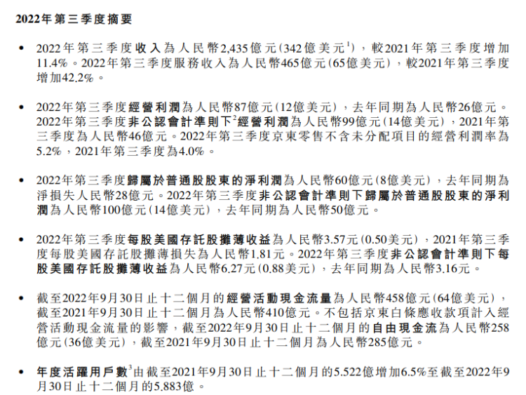 6、京东Q3营收同比增11.4%,调整后净利润同比增长100%