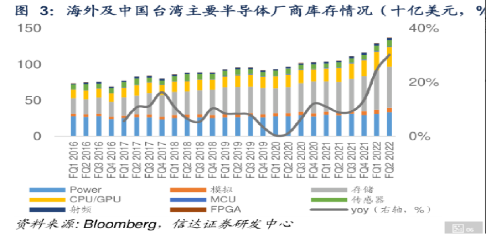 实际上,别说新的供应,半导体库存都还在高位。此前在缺芯潮影响下,诸多厂商疯狂囤货,据估计除了汽车领域,整个行业供应链的库存调整需要到2023年二季度才会结束。