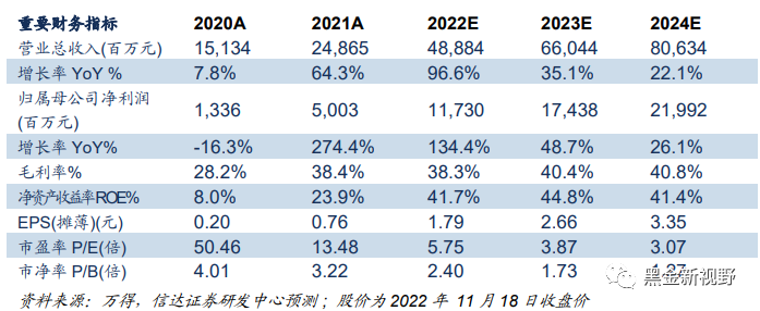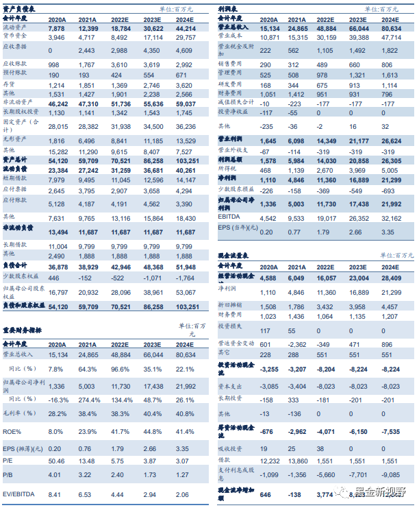 现金流显著改善,员工持股计划的考核业绩彰显高增长信心。2021年公司实现经营活动现金净流量60.49亿元,同比增长31.84%,2022H1经营性现金流量净额达63.28亿元,增幅达175.85%。公司于2022年4月25日发布《2022年员工持股计划(草案)》,计划授予198名员工(初始设立时)4548.75万股,转让价格为回购成本均价2.84元/股,考核年度为2022-2024年,归母净利润分别不低于100亿、150亿、200亿。同时,公司发布《关于提高公司未来三年(2022-2024)年度现金分红比例的公告》,将2022-2024年度的现金分红比例大幅度提高为:“连续三年以现金方式累计向普通股股东分配的利润不少于最近三年实现的年均可供普通股股东分配利润的90%,且每年实际分配现金红利不低于0.70元/股(含税)”。