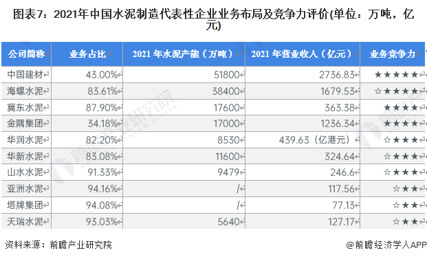 4、中国水泥制造行业企业布局及竞争力评价