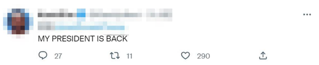 但是,在特朗普的推特账号之外,也有网友发推表示,其实没那么欢迎特朗普回归。