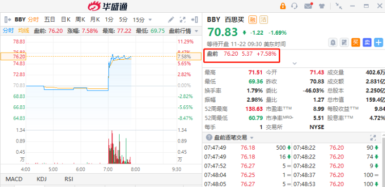 百思买盘前涨超7%,第三财季业绩超预期