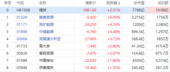 从个股表现来看,南南资源、中煤能源、兖矿能源等多数煤炭股受消息面影响,股价均呈现不同的涨幅。