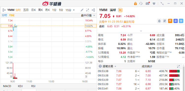货运平台满帮大涨14.82%,报7.05美元,盘前发布的财报显示,三季度营收18.1亿元,同比增长45.7%,Non-GAAP净利润达4.9亿元,去年同期为亏损470万元。