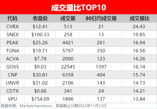 - 广播电视公司特格纳公司 $TGNA 相对期权量比达16.56,此前《巴伦周刊》分析师撰文称,近期小盘股已经走出了过去7个月的低迷状态,特格纳公司等小盘股在本月更早些时候获富国银行分析师定为“买入”评级,分析师认为其债务可控,股本回报率高于平均水平,未来利润率可期。