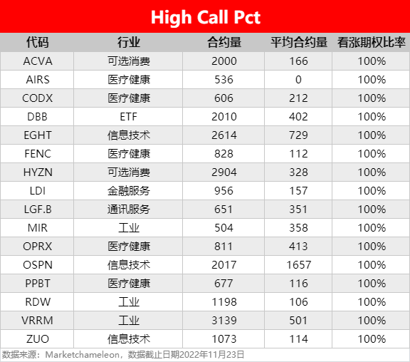 注:High Call Pct/High Put Pct是指相关期权标的当前看涨/看跌比例大小,该比值越高意味着该期权标的看涨/看跌的合约占比越高。