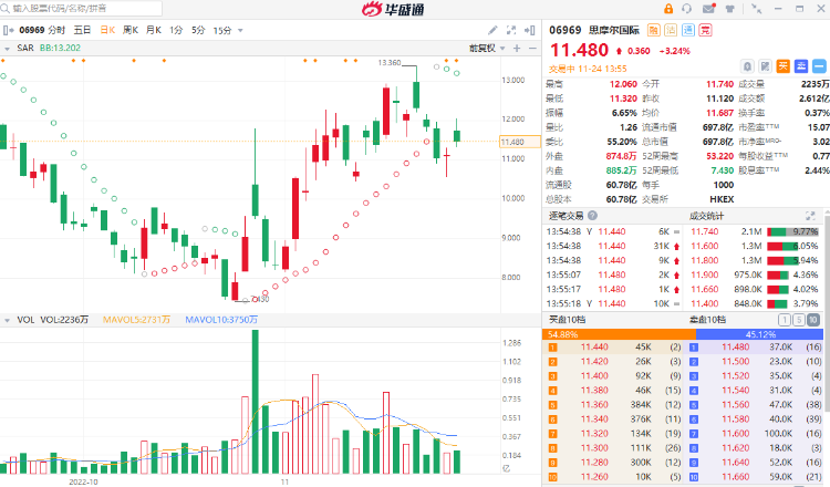 11月24日,电子烟概念股早盘集体高开,思摩尔国际(06969)股价一度涨近9%,现涨3.24%,报11.48港元每股,成交额2.61亿港元。