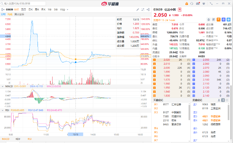 房地产利好之下,资金到底有多疯狂?11月24日上午,亿达中国股价刷屏,昨日有7000元撬动2倍股价,今日有19万撬动9倍股价,两天股价涨了32倍,如果按今日高点7.01港元计算,两日暴涨45倍。但引发股价上涨的资金量只有不到20万元。