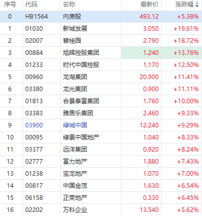 11月24日消息,今日地产股集体涨疯了,截至发稿,新城发展涨19.6%,碧桂园涨18.7%,美的置业涨16.9%,旭辉控股涨13.7%,龙湖涨11%,金科服务、美的置业、世茂服务、新城发展等纷纷涨出7cm大肉。