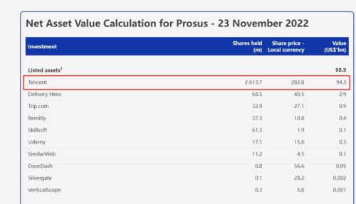 此前Prosus资产净值报表显示,截至10月28日,Prosus持有26.926亿股腾讯股票,与港交所披露文件显示的9月9日持股数量一致。