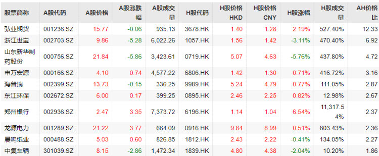 深股通中,弘业期货、浙江世宝、山东新华制药、申万宏源、海普瑞等位列溢价榜前列。投资者可关注相关个股估值回归机会。