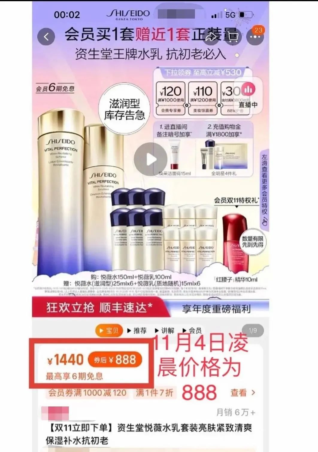 据媒体报道,“双11”预售活动期间,有消费者反映,11月4日凌晨,资生堂官方旗舰店直播间开卖的一款悦薇水乳套装只需888元,比电商主播直播间的同款商品到手价便宜300多元。当日晚,资生堂旗舰店回应:888元的价格为“系统故障,将对异常订单统一做退款处理,并给以适当补偿”。在小红书平台上,有不少自称拍下上述888元套装还未收到货的用户表示,接到了资生堂客服的电话,对方要求直接取消该订单,但作为补偿,承诺所拍的套装将全部赠予。这进一步引发其他直播间消费者的不满——她们以较高的“正常”价格购买了商品,而以较低价格“异常”订单购买的消费者,却最终获得免费。不少消费者要求资生堂给出进一步回应和解决方案。