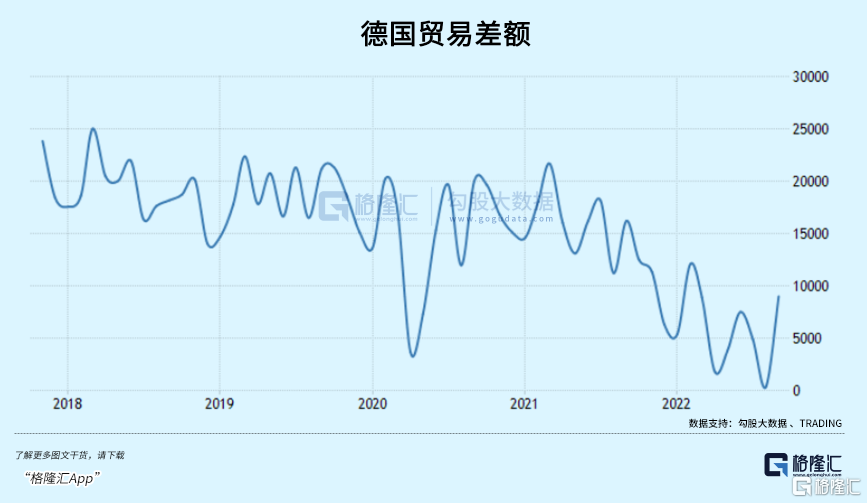 作为出口强国,德国近期的贸易差额竟一度趋近于0。