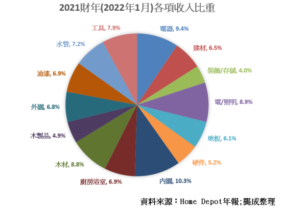 根据2021年美国银行分析,家得宝和劳氏公司分别占家居装修工程市场份额约17%和12%。除了反映其两大巨头,占有一定寡头优势,同时间,代表市场尚有不少可整合空间,留给它们未来发展。