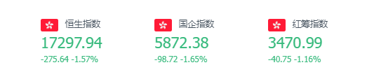 截至周一收盘,恒生指数跌1.57%,报17297.94点;国企指数跌1.65%,红筹指数跌1.16%。恒生科技指数跌1.93%,理想汽车跌5%,京东集团跌超4%,阿里巴巴跌超3%。