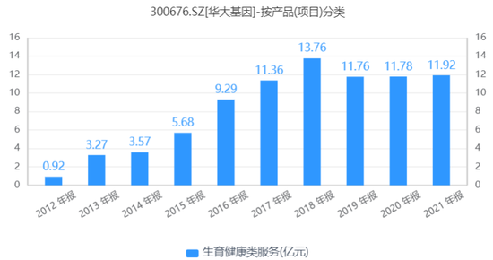 悲剧发生之后,华大基因由此陷入舆论漩涡,NIPT业务收入也陷入增长瓶颈,2019年该业务仅实现营收11.76亿元,同比下滑15%。2021年该业务销售收入为11.92亿元,尚未恢复到2018年同期水平。