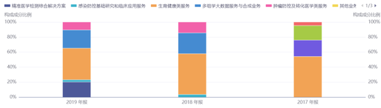 上市之初,华大基因主营业务主要以生育健康基础研究和临床应用服务为主。2017年-2019年,生育健康类服务在公司总营收中的占比在40%以上,为公司主要收入来源。