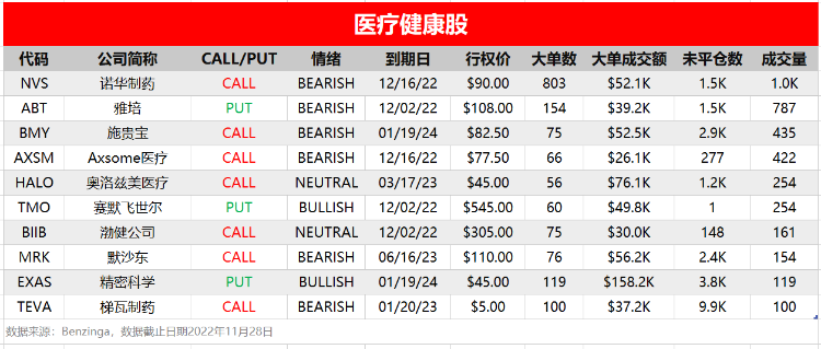 - 默沙东于看涨期权异动,行权价110美元,该股近两个月累计涨幅超过25%,近期默沙东宣布将通过子公司以每股36美元的价格现金收购创新药公司Imago BioSciences,总交易额约为13.5亿美元,预计将于2023年第一季度完成。