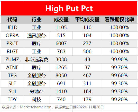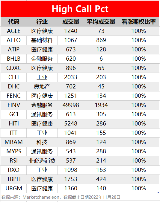 注:High Call Pct/High Put Pct是指相关期权标的当前看涨/看跌比例大小,该比值越高意味着该期权标的看涨/看跌的合约占比越高。