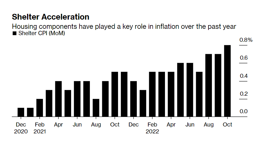 以住房为例。由于住房往往是家庭每月最大的一笔开支,该类别约占总体CPI的三分之一,约占核心CPI的40%。
