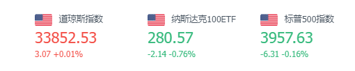 美股周二收盘涨跌不一,纳指与标普500指数连续第二个交易日下滑。道指涨0.01%,报33852.53点;纳指跌0.59%,报10983.78点;标普500指数跌0.16%,报3957.63点。中概股普遍上涨,苹果收跌2.11%,特斯拉收跌1.14%。