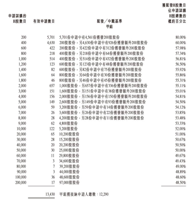 详细配发结果如下:
