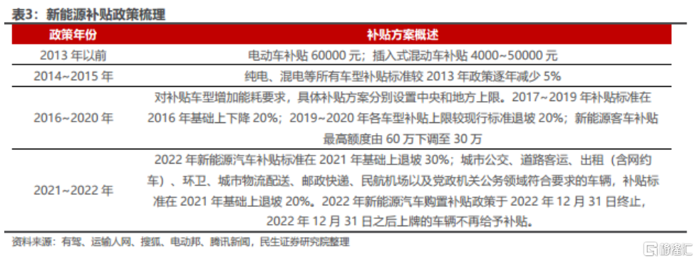 此前,财政部等四部委发布的《关于 2022 年新能源汽车推广应用财政补贴政策的通知》明确:新能源汽车购置补贴政策于 2022 年底终止。即 2023 年 1 月 1 日开始,新能源车企将不再享受“新能源汽车购置补贴”。