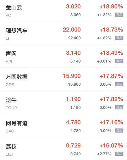 领涨中概股列表: