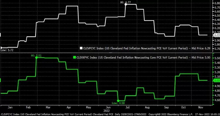 Investing.com的分析师Michael J. Kramer在一篇报道中指出了一个问题,11月10日公布CPI放缓至7.7%之后,市场可能过于乐观PCE数据也将放缓。在10月,对消费者物价指数(CPI)中医疗保险费用的计算方法进行了改革,这些变化不会出在现在个人消费支出(PCE)报告中,这意味着市场现在对PCE数据的预期可能太低了。同时,他表示,如果数据超预期,可能会对当前市场的反弹造成新的威胁。