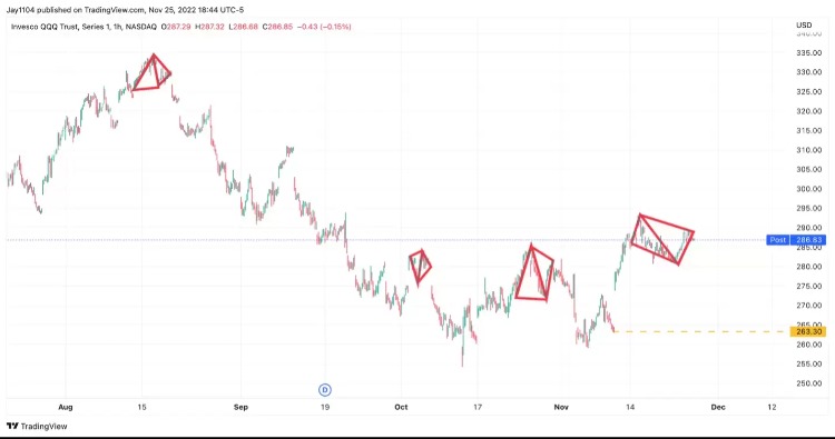 纳斯达克100ETF的恢复幅度不及标准普尔500指数,但它确实具有与标普500指数相似的菱形反转模式,如图所示。最近几个月,纳斯达克100ETF多次出现这种模式。每次,这种模式都会导致所有的收益被抹掉。