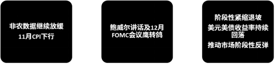 近期,因为抵押利率持续在高位,二手车的跌幅并没有趋缓,整个的CPI很多分项其实在12月份到明年一季度都会加速的回落。在这样的情况下,言财老师认为美股圣诞行情值得期待,12月初需要重点关注非农数据和11月CPI,以及鲍威尔讲话和FOMC会议。真的有一些鸽派的信号出现了,这个时候就会进入到一个阶段性交易紧缩退坡的阶段,然后美元美债收益率会持续回落,推动市场出现阶段性反弹。