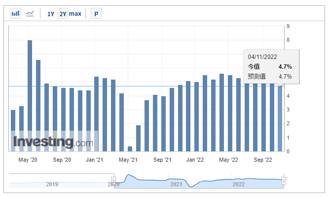 几十年来最紧张的劳动力市场也推动了几十年来最大的工资增长。10月时薪同比涨幅为4.7%,美联储希望看到工资增长放缓至疫情前2% - 3%的水平,以帮助降低通胀。