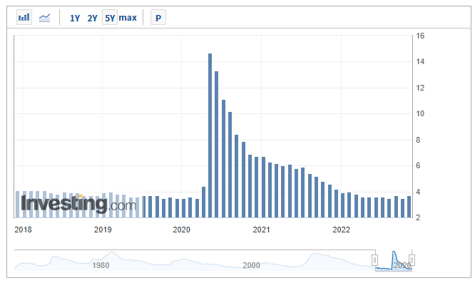 道琼斯预计,失业率将连续第二个月保持在3.7%,仍接近50年来的低点,这很好地说明了劳动力市场的紧张程度。不过,预计失业率将攀升,因为美联储的加息将减缓经济增长,并引发更多裁员。美联储此前预测,到明年失业率将升至4.4%,但现在一些高级官员说,失业率可能会升至接近5%的水平。