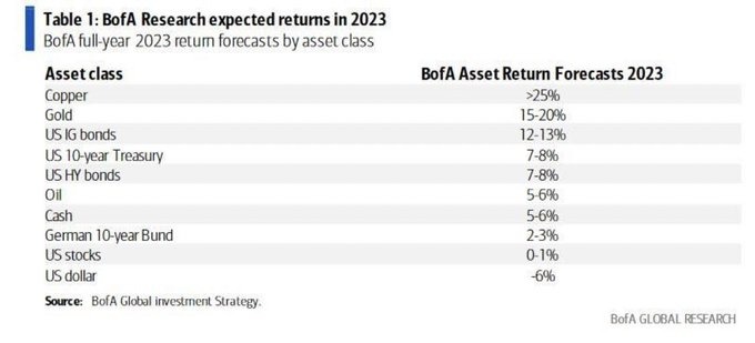 - 而今年美股市场上分析最准的美银分析师Hartnett在11月底发布报告表示,明年最看好铜,预计明年铜收益率将超过25%,认为美股将打平、美元则是预计将下跌约6%。同时,该分析师强调,“美元见顶”和做多商品/新兴市场资产的通胀交易会有很好的收益。
