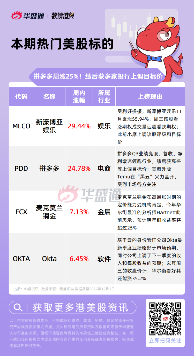 2、拼多多 $PDD 周内累涨近25%,绩后获多家投行上调目标价,海外版Temu在“黑五”大抢风头受市场高度关注;