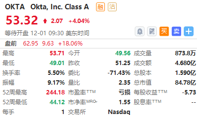 Okta $OKTA 盘前涨超18%,Q3业绩、Q4指引均超预期