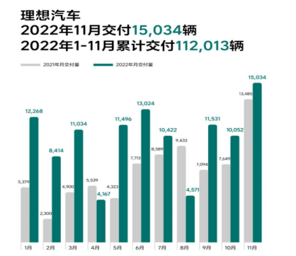 理想汽车 $LI :11月交付新车15034辆,创单月最高交付纪录