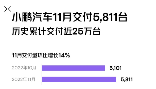 小鹏汽车 $XPEV :11月交付量为5811辆,环比增长14%