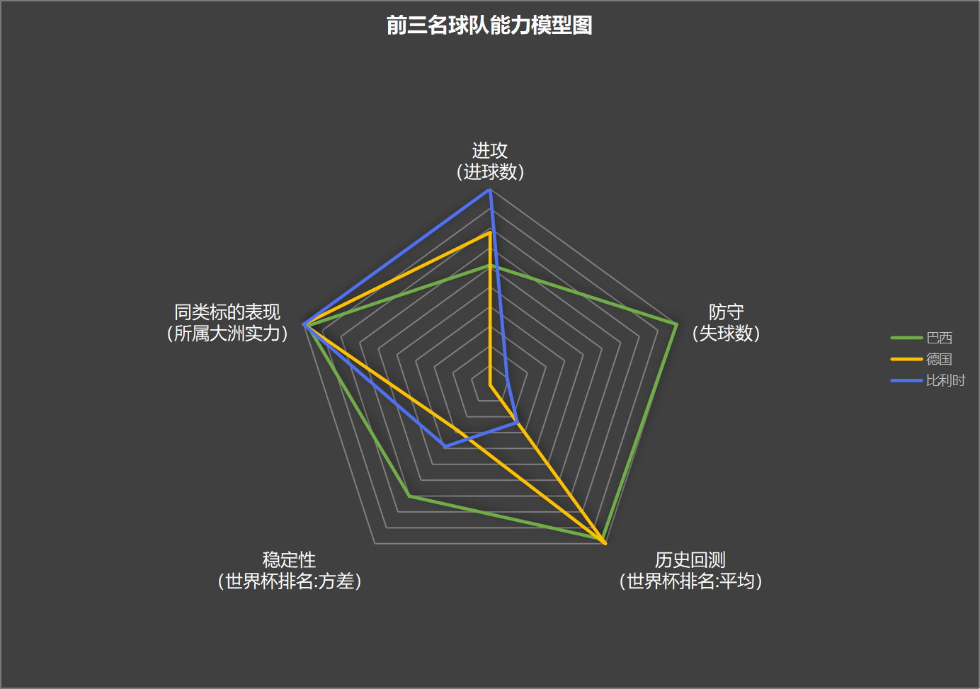 德国队和比利时队,虽然在总的排名中挤进了前三,但在防守上比较薄弱。尤其比利时过去100场球赛中得分很多,失球也不少。德国则是历史表现优异,尽管成绩波动较大。