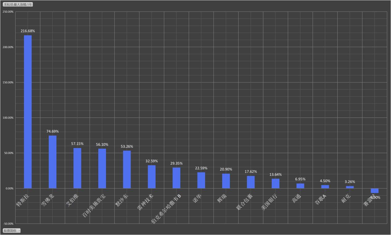 比如在进攻方面,采用个股在1年之内最大涨幅,用来反映可以得到的最大收益。