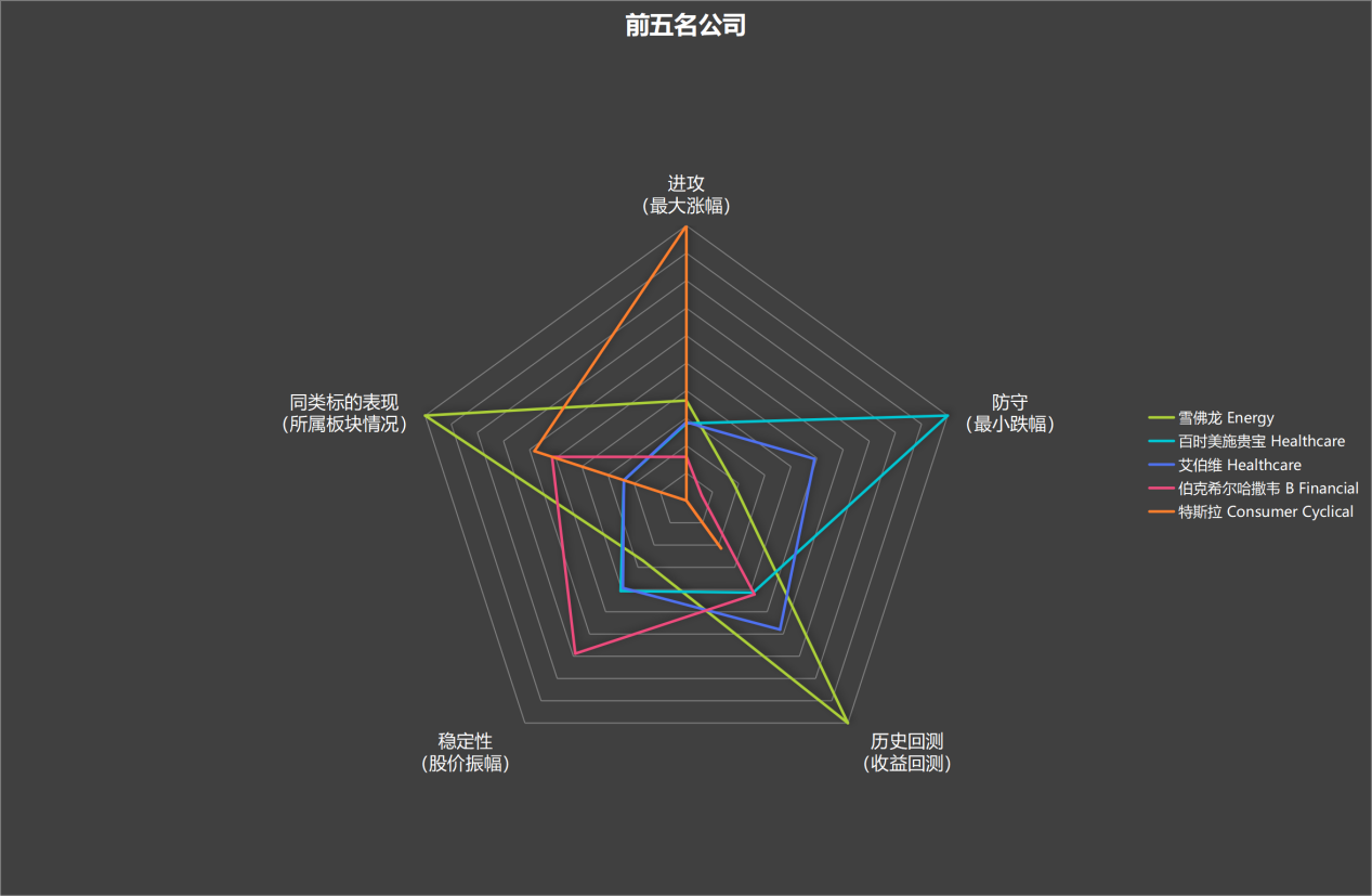 用同样的方法,确定公司的防守(1年内最低价相较开盘价跌幅)、稳定性(股价波动幅度)、历史战绩(2年内回测结果)、所属板块情况。