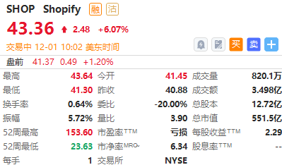 Shopify $SHOP 涨超6%,黑五网一战报宣布,全球GMV达75亿美元,同比增长19%。
