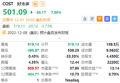 好市多 $COST 跌超7%,好市多表示,11月份销售额增长5.7%至191.7亿美元,而10月份的销售额增长7.7%。另外,公司11月同店销售总额增长4.3%,预估增长7.7%。