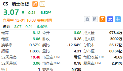 瑞信 $CS 跌超6%,再度刷新历史低价。该股上个月累计跌幅超20%,亦走出上市以来最长连跌行情。当前面临股价暴跌、信用违约掉期(CDS)飙升和资金外流的压力。
